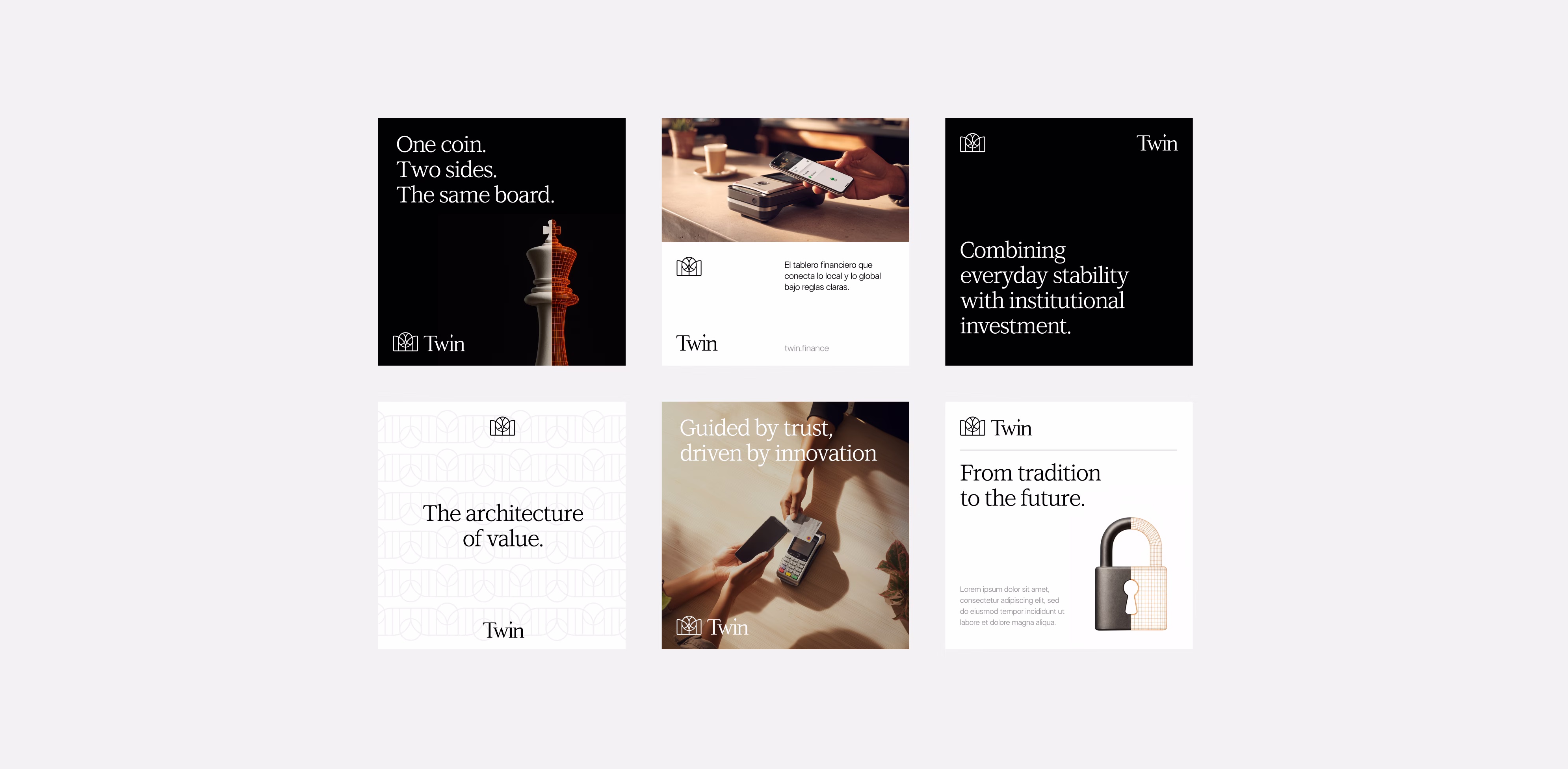That's why we created a modular brand architecture, with Twin as the masterbrand and two verticals ready to grow: Twin Stablecoins and Twin Securities. A structure designed to avoid fragmentation and support new extensions under a single, cohesive narrative.